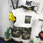 Pure cotton short-sleeved camouflage T-shirt two-piece Korean style children's clothing