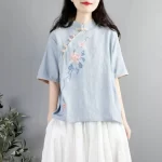 | nameOriginal | Pure cotton short-sleeved Chinese ethnic style embroidered literary cheongsam |