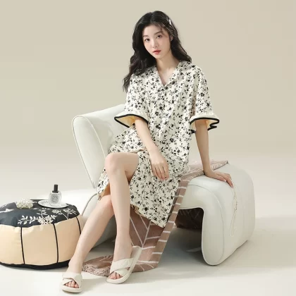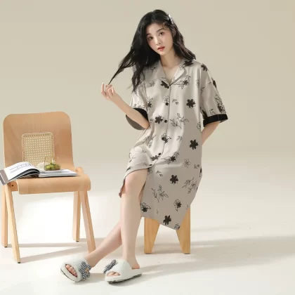 قطن نقي قصير الأكمام رقيقة الصيف ثوب نوم الحوامل