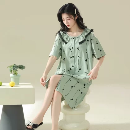 Pure cotton short-sleeved thin summer maternity-style nightgown