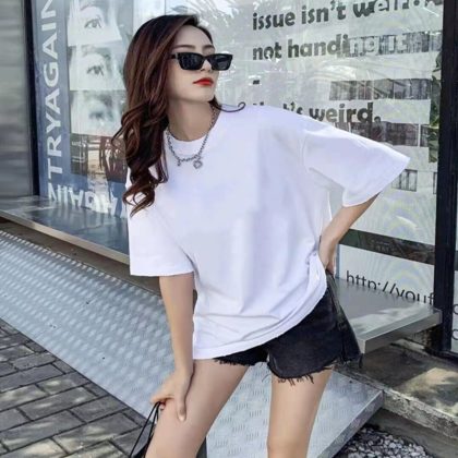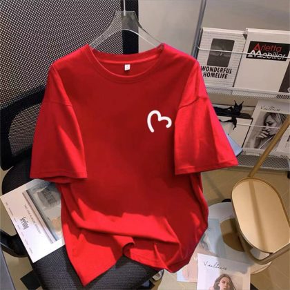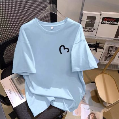 | nameOriginal | Pure cotton shoulder summer thin 2023 new love short-sleeved T-shirt women plus size loose white all-matching ins top |