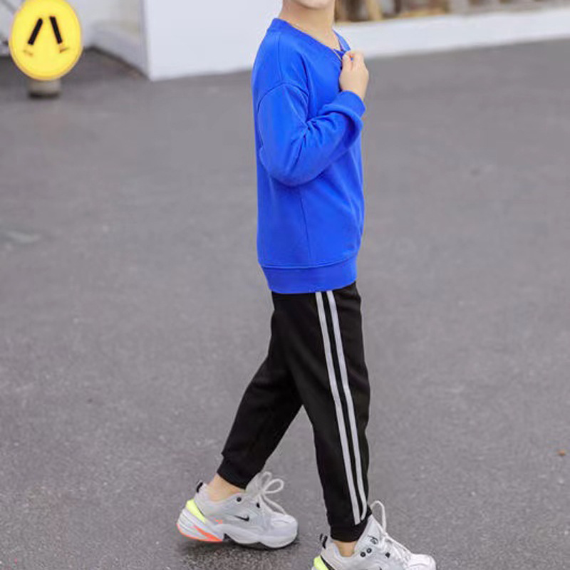 القطن الخالص الربيع والخريف الزي المدرسي السراويل فضفاضة ملابس الأطفال للبنين والبنات اثنين من شريط الياقوت الأزرق الأسود السراويل المدرسية لطلاب المدارس الابتدائية السراويل الأطفال