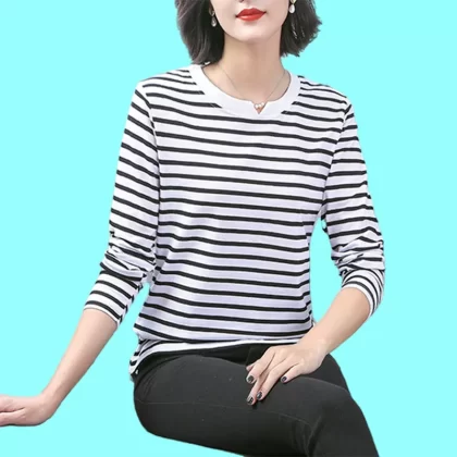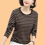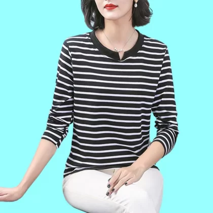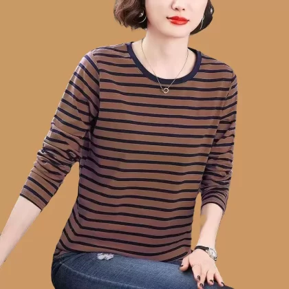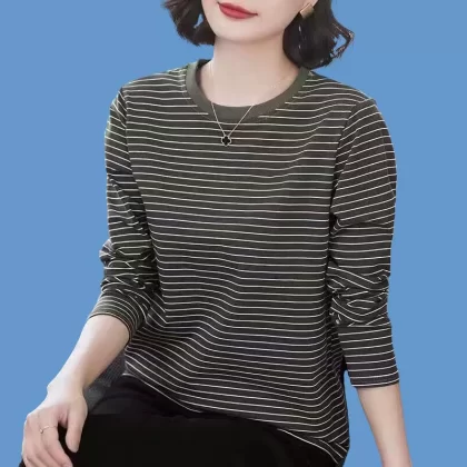 | nameOriginal | Pure cotton striped mommy loose top long sleeve t-shirt |
