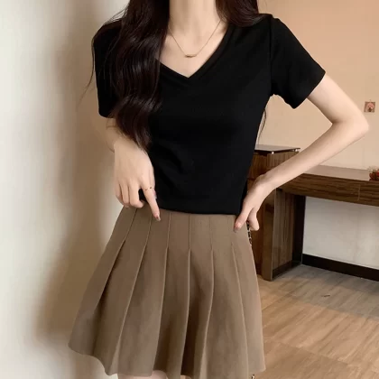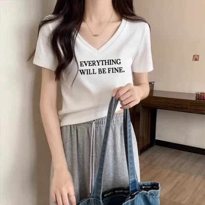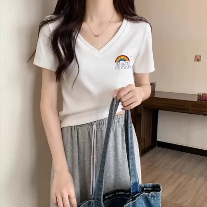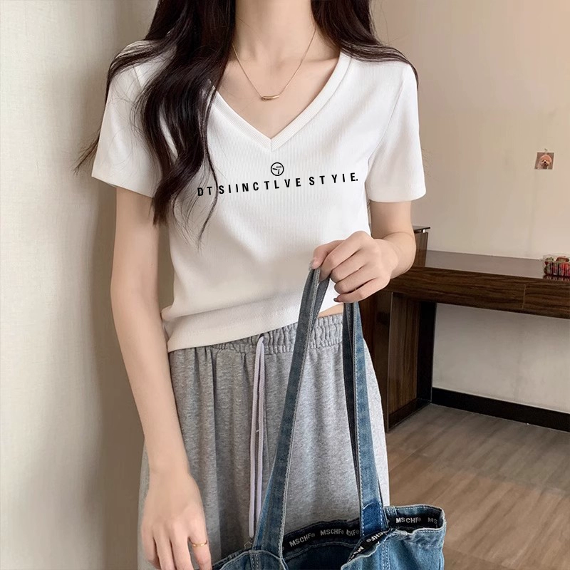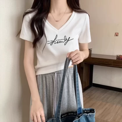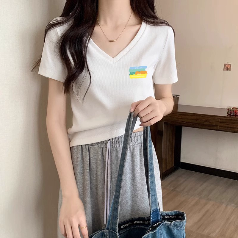 | nameOriginal | Pure cotton summer V-neck fashionable white right shoulder short-sleeved T-shirt |