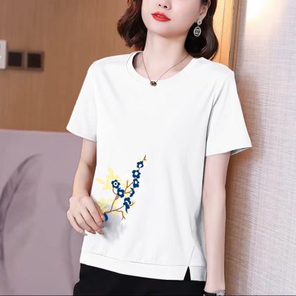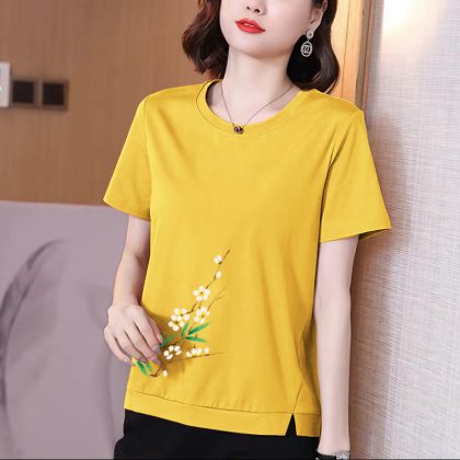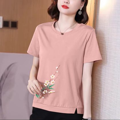 | nameOriginal | Pure Cotton T-Shirt Women's Short-sleeved Summer Middle-aged Women's Loose Slimming New Arrival Chinese-style Mother's Elegant Trendy Top |