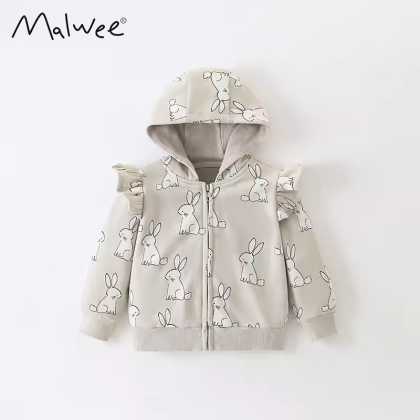 Pure cotton terry all over printed rabbit spring and autumn 90-140 sweatshirt