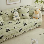 Pure cotton twill fabric sofa cushion for all seasons, panda pattern, cute quilted thickened backrest cover, cartoon cover
