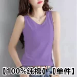 Pure cotton V-neck sleeveless T-shirt casual loose two-piece