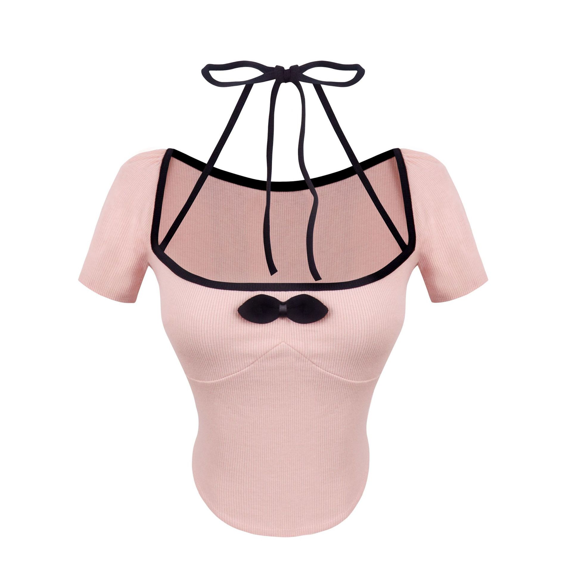 | nameOriginal | Pure Desire Bow U Neck Sexy Collarbone T-shirt Women's Summer Spice Girls Short-sleeved Top Short Low-cut Tight Base Shirt |