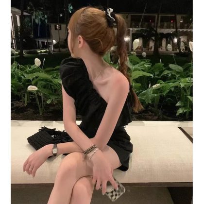 | nameOriginal | Pure Desire Hot Girl Ruffled One-Shoulder Shirt Women's 2024 Summer Short Vest Women's Angled Shoulder Sexy Sleeveless Top |