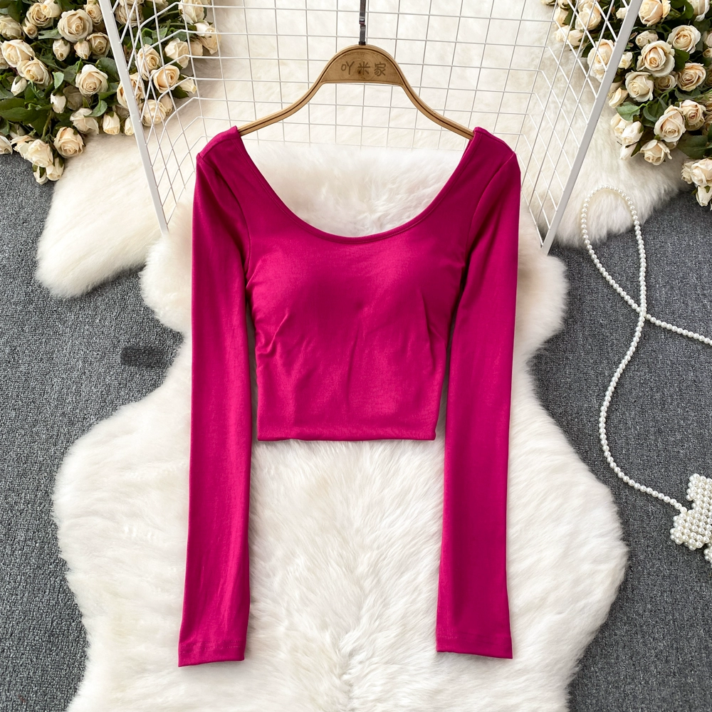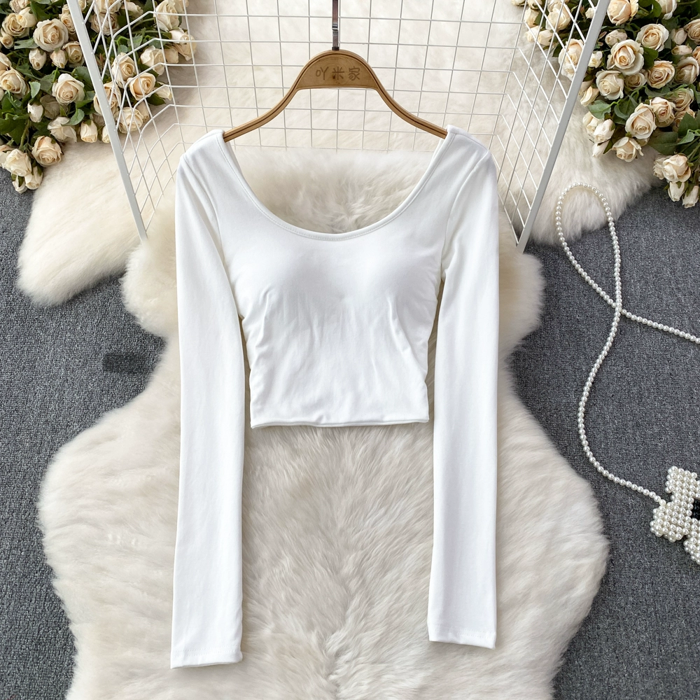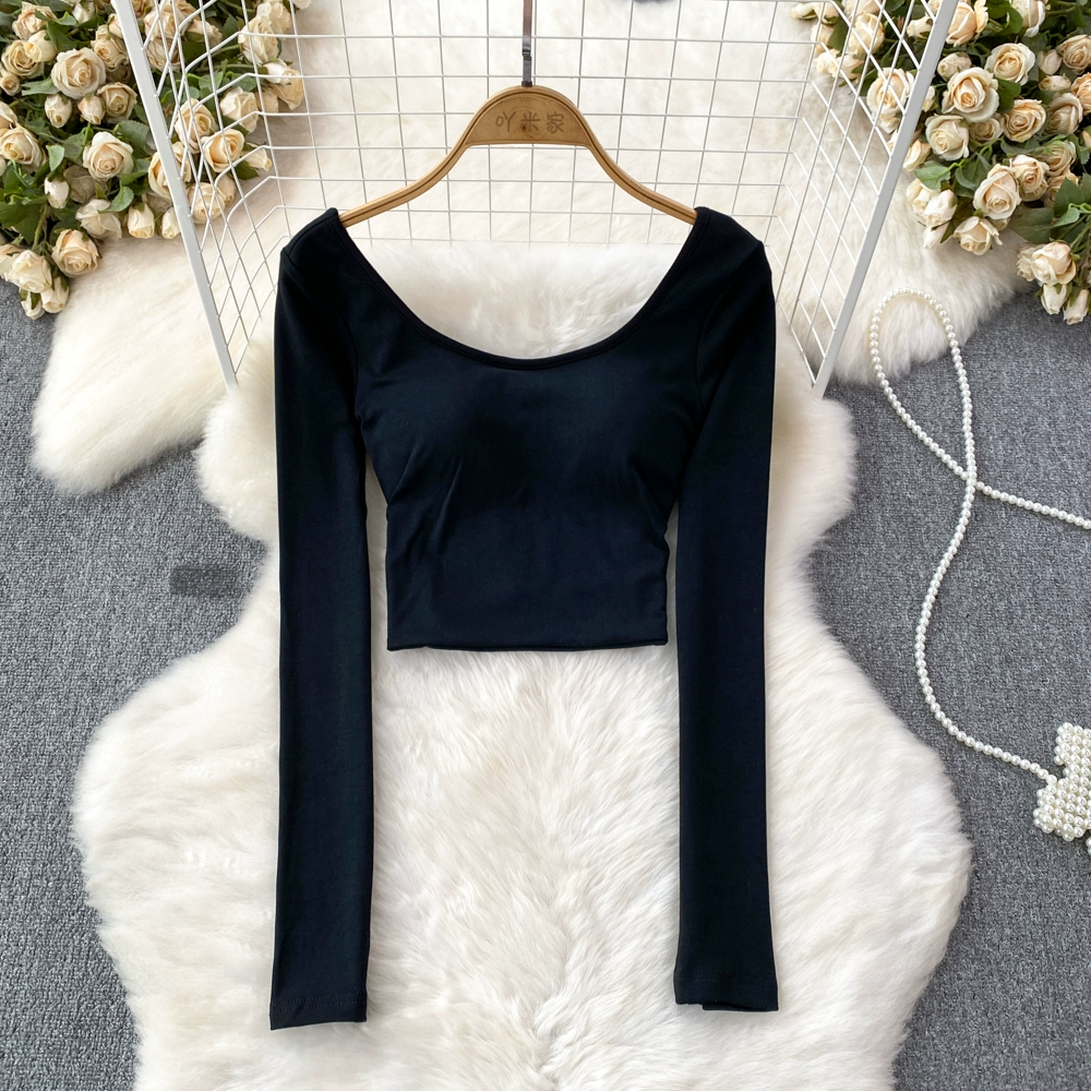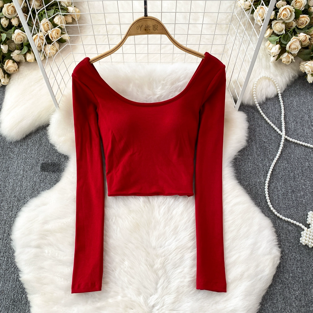 Pure Desire Hot Girl Scoop Neck Hollow Slim Long Sleeve T-Shirt