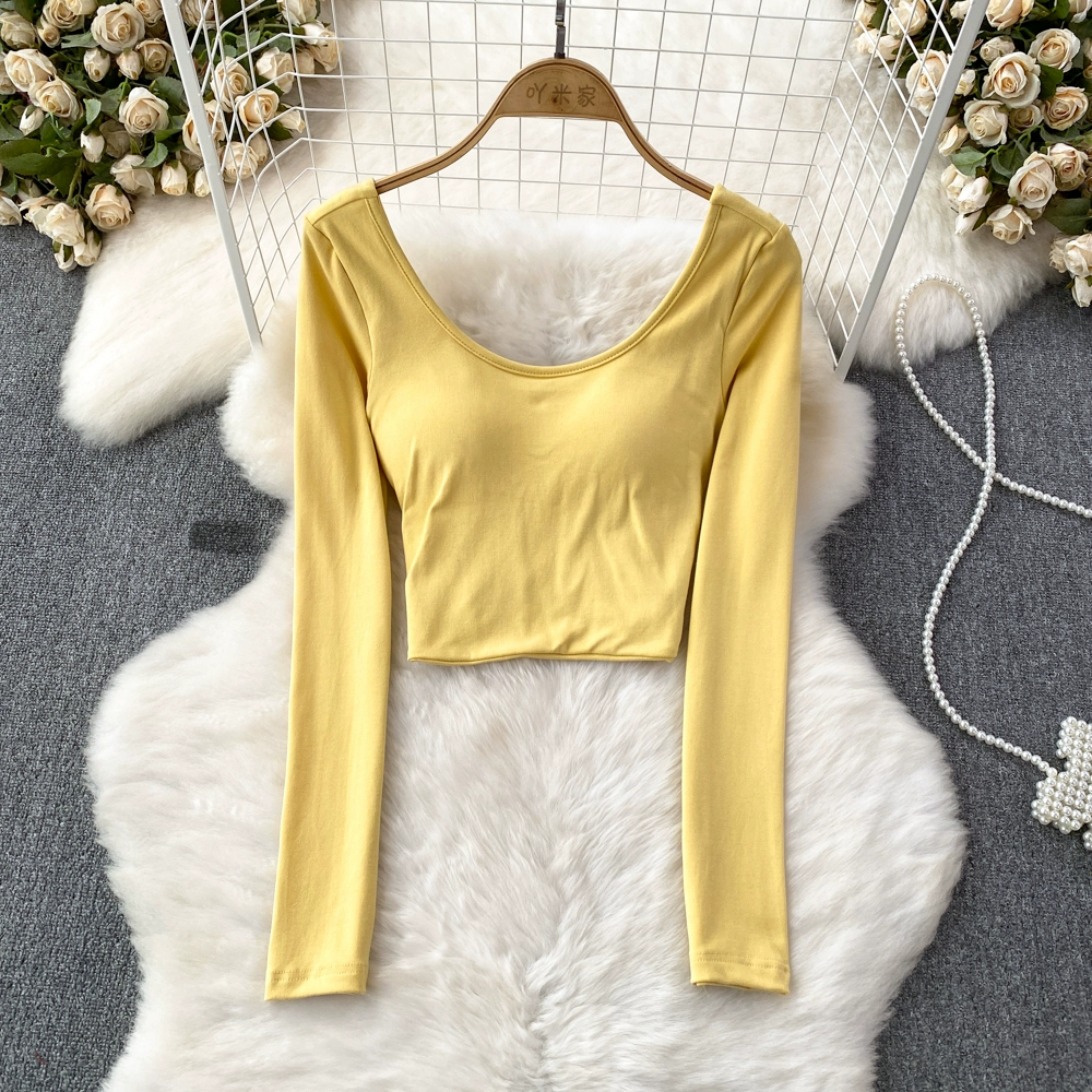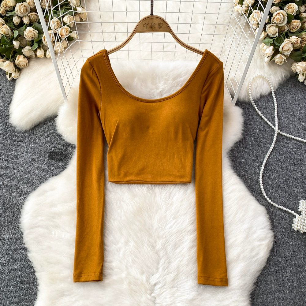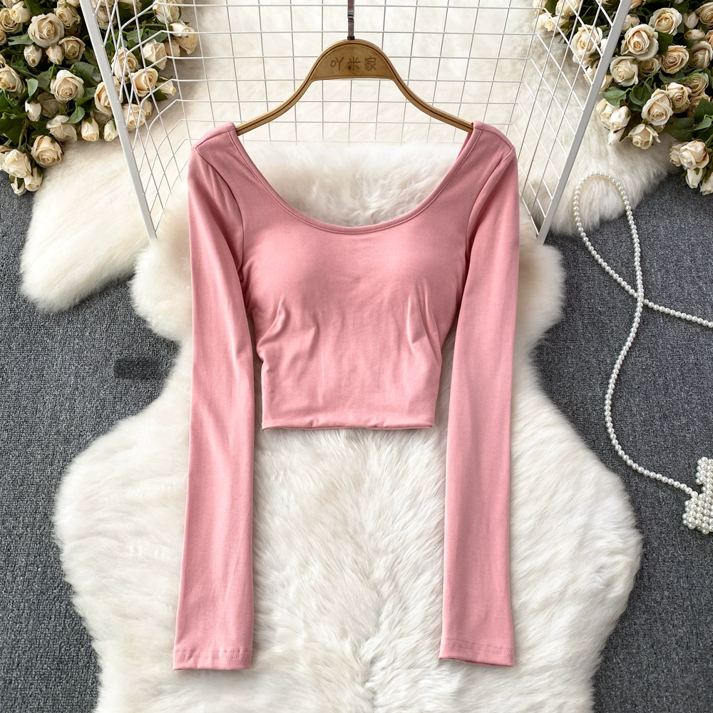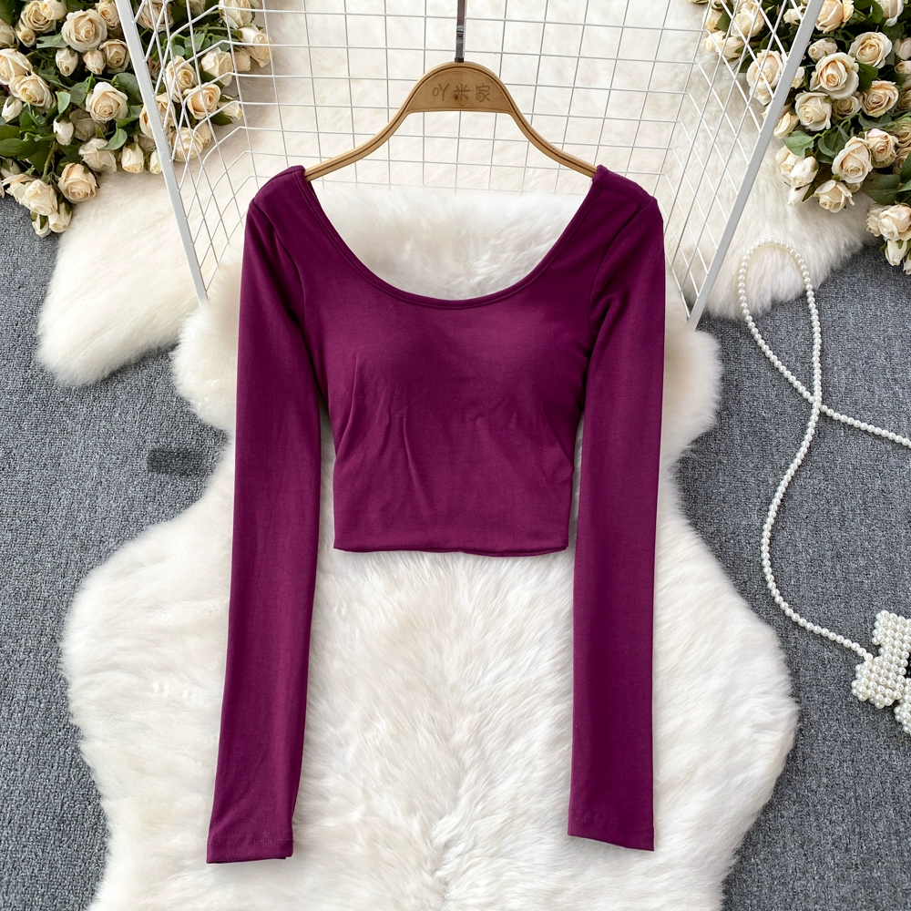 Pure Desire Hot Girl Scoop Neck Hollow Slim Long Sleeve T-Shirt