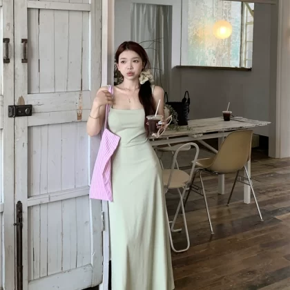 | nameOriginal | Pure desire mint green summer temperament suspender dress |