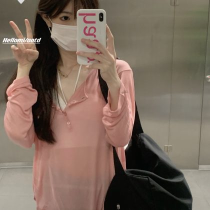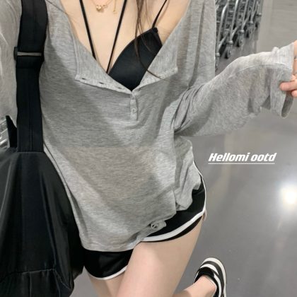 | nameOriginal | Pure Desire Style Grey Thin V-neck Long-sleeved T-shirt Women's 2024 Summer New Sunscreen Shirt Niche Sweetness Hot on the Road |