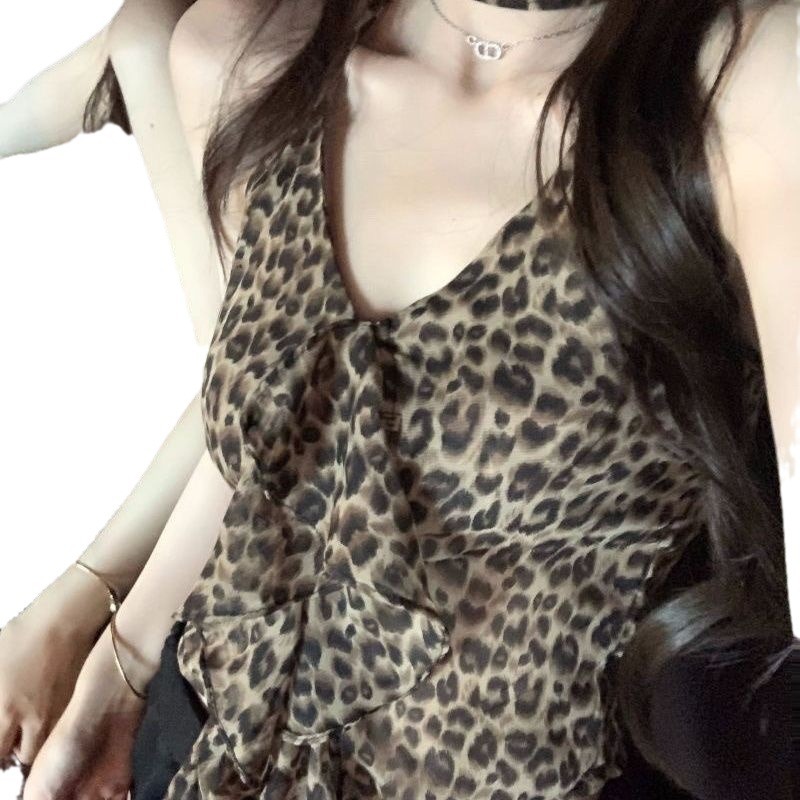 | nameOriginal | Pure Desire Style Leopard Print Halter Sling Women's 2024 Summer Sexy Backless V-Neck Short Outer Wear Spice Girl Tight Vest |