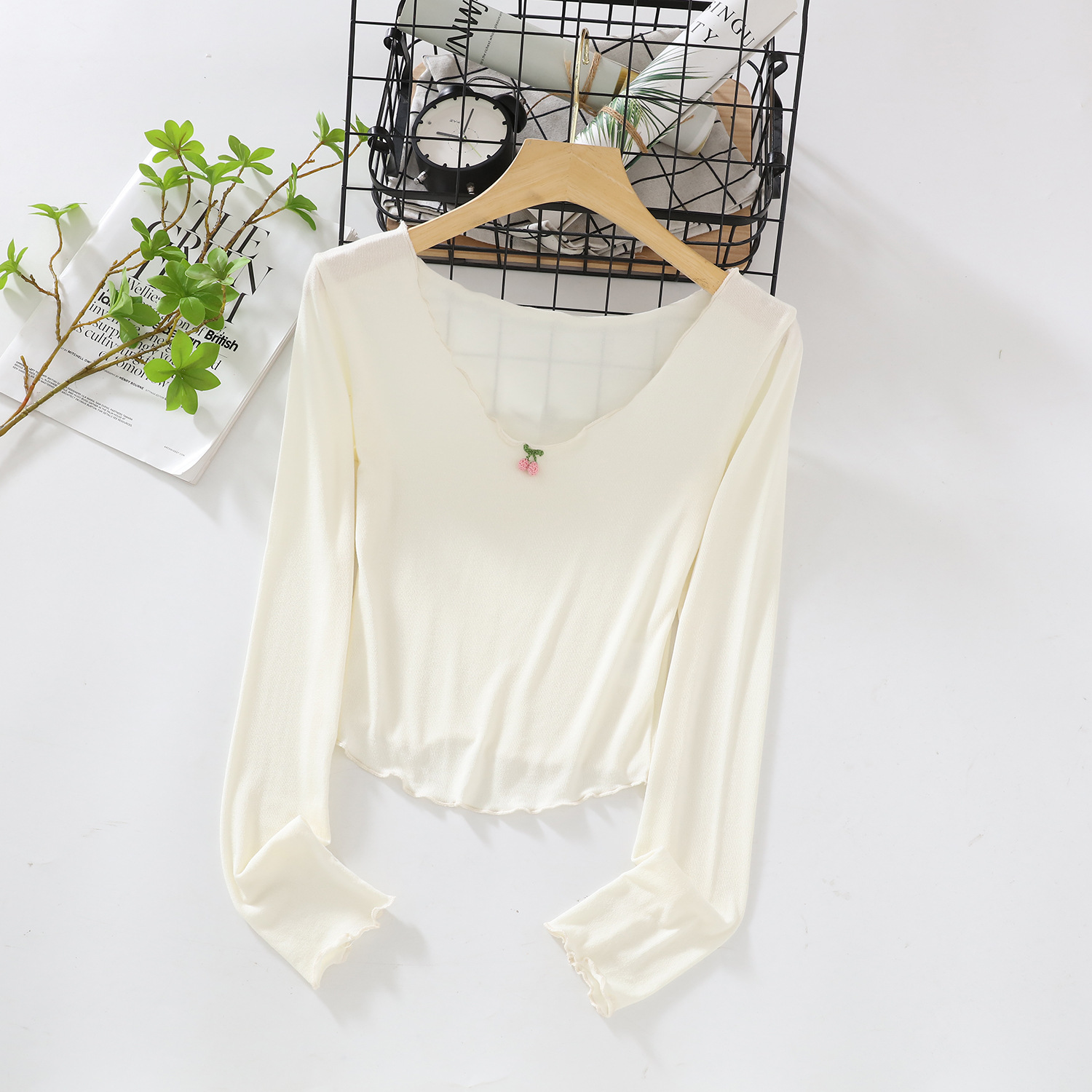 | nameOriginal | Pure Desire Style Soft Waxy Cherry Long-sleeved Base Shirt Summer New Thin Inner Slimming Top |