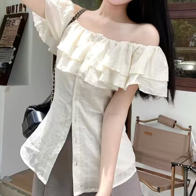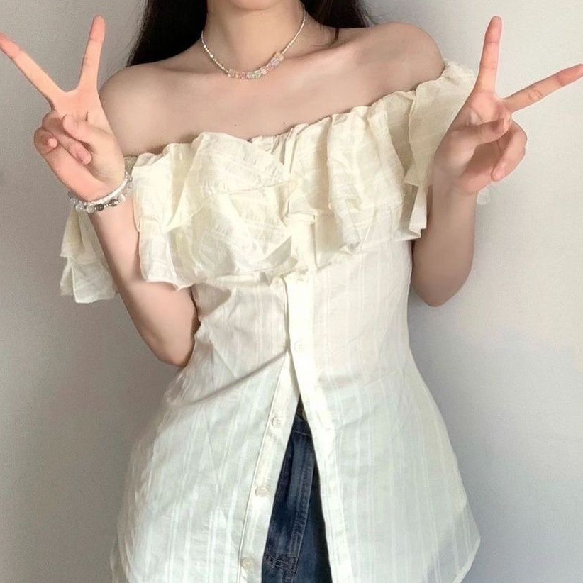 | nameOriginal | Pure Desire Sweet Spice Girl Short-sleeved off-shoulder Women's Ruffled Waist Slimming French Shirt Design All-match Top |