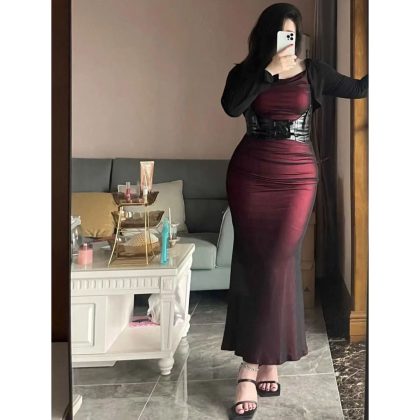 | nameOriginal | Pure Style Sexy suit Women's Elegant Sling Fishtail dress plus size Pleated Slim-fit Long Sleeve Cardigan |