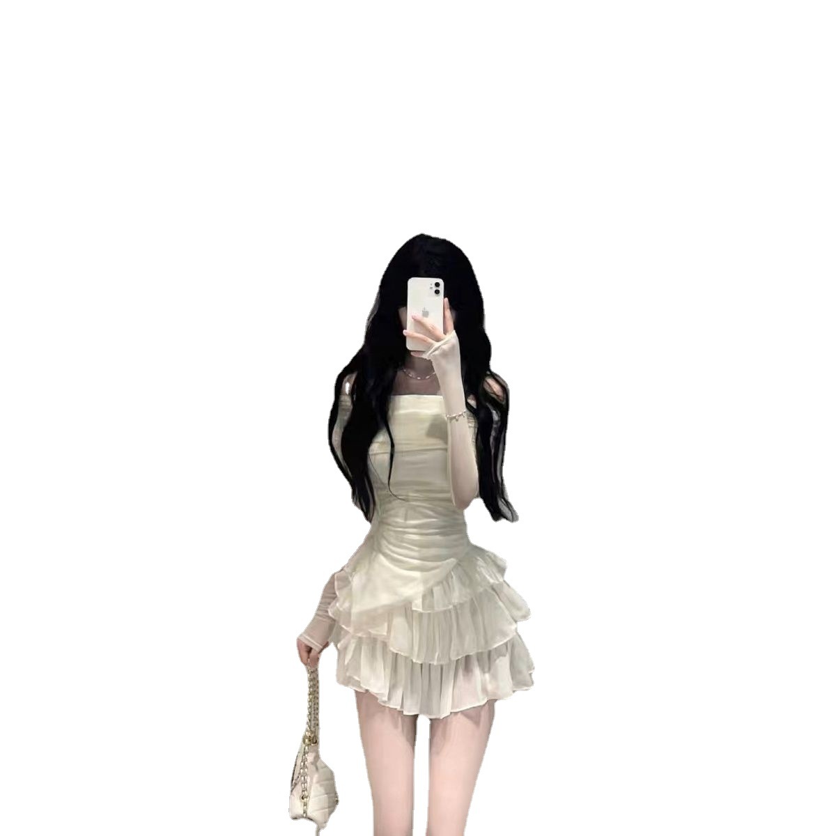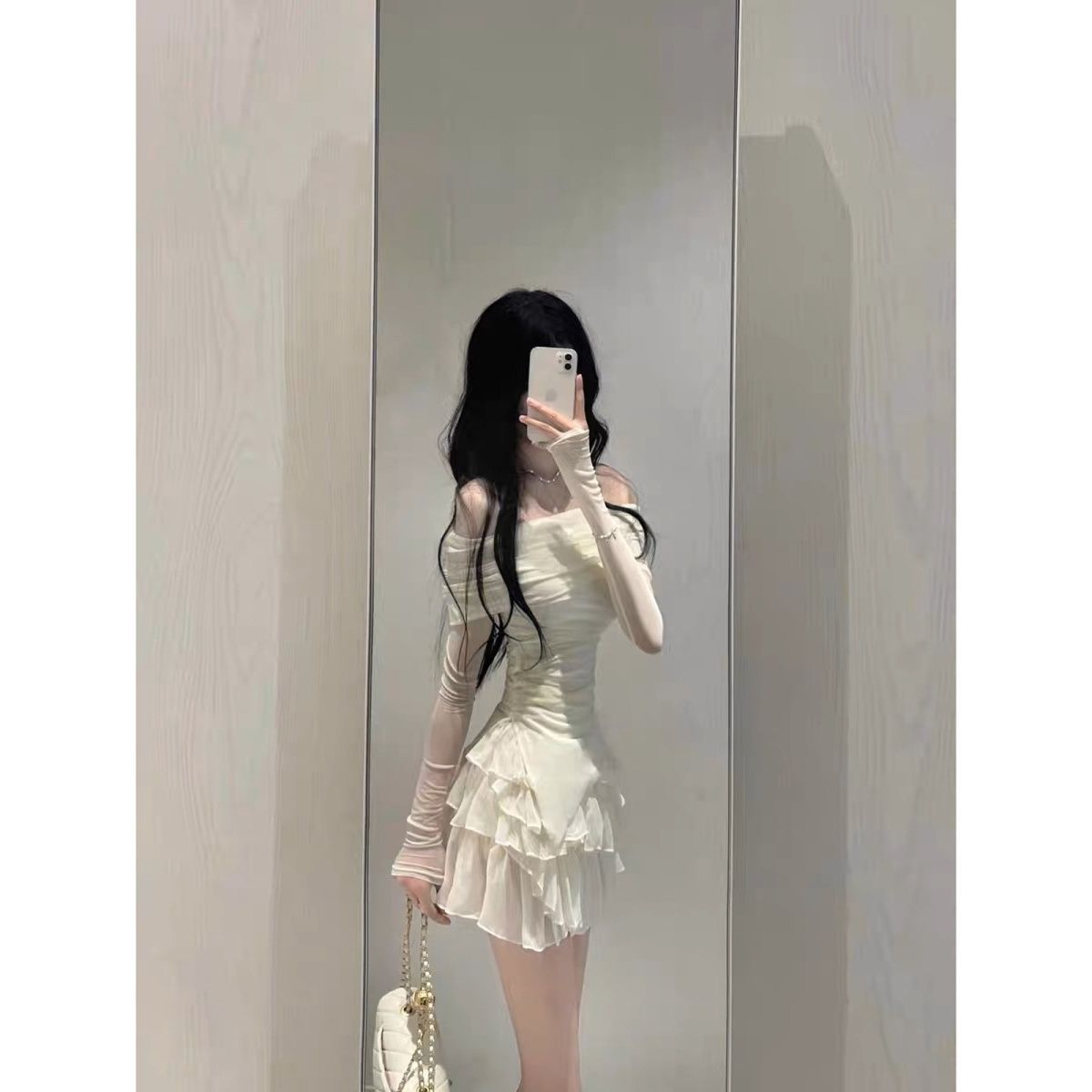 | nameOriginal | Pure sweet and spicy suit skirt women's slim-fit slimming long-sleeved off-shoulder top hot girl high waist cake skirt two-piece set |