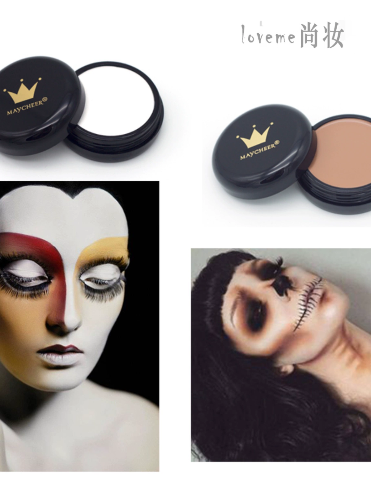 Pure white foundation, black powder, skull goth vampire zombie COS stage makeup performance highlight concealer