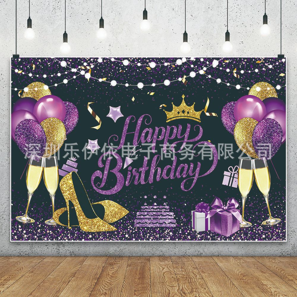 | nameOriginal | Purple Black Gold Children Happy Birthday Girl Girl Party Decoration New Photo Photography Background Cloth Banner |