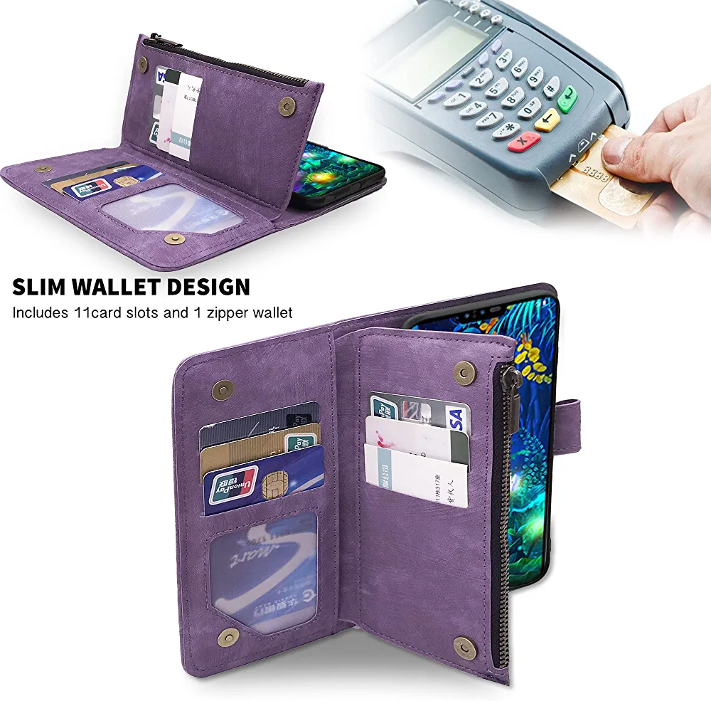 تحتوي حقيبة المحفظة على 5 فتحات قياسية للبطاقات وفتحة واحدة لبطاقة الهوية وفتحة للنقود وجيب محفظة بسحاب، مما يسمح لك بحمل بطاقاتك الأساسية والنقود دون الحاجة إلى محفظة ضخمة. يعد تصميم حامل العرض بدون استخدام اليدين مثاليًا لمحادثات الفيديو ومشاهدة الأفلام.