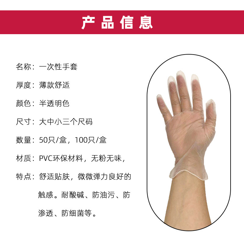 | nameOriginal | PVC disposable gloves transparent powder-free thickened Labor baking catering food-grade beauty salon tattoo gloves |