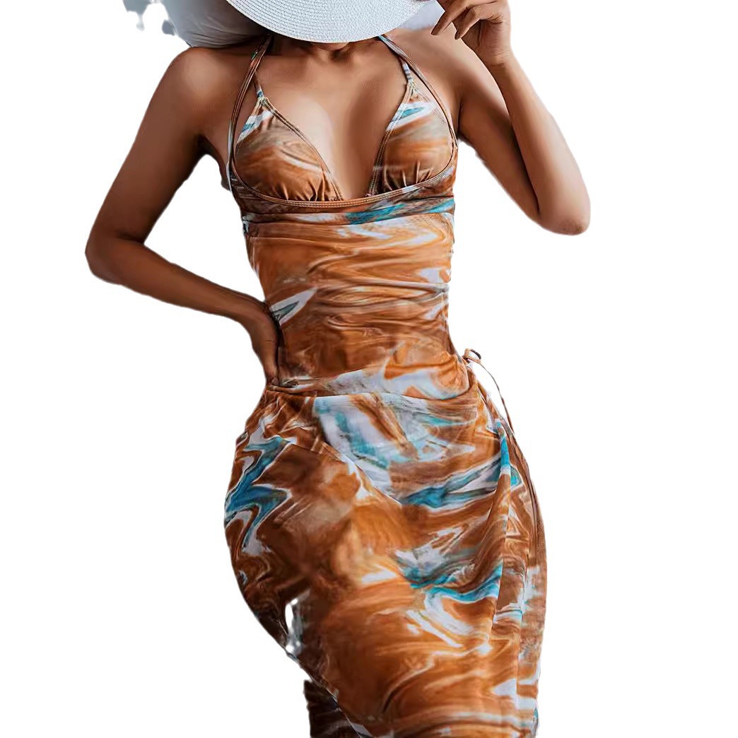 Q22S8120 European and American women's Amazon summer new bikini chiffon swimsuit sexy three-piece