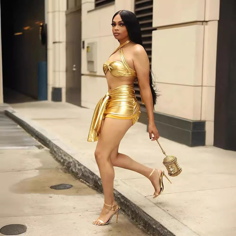 | nameOriginal | Q5273 Amazon European and American Women's Cross-border Nightclub Fashion Strap Sexy Wrap Chest Stretch Leather Two-piece Set |