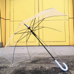 مظلة Qiutong مقاومة للرياح بمقبض طويل وشفافة صغيرة