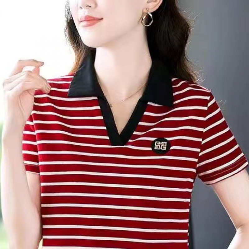 | nameOriginal | Quality mom lapel short sleeve T-shirt women's summer new polo middle-aged sports casual top plus size slim |