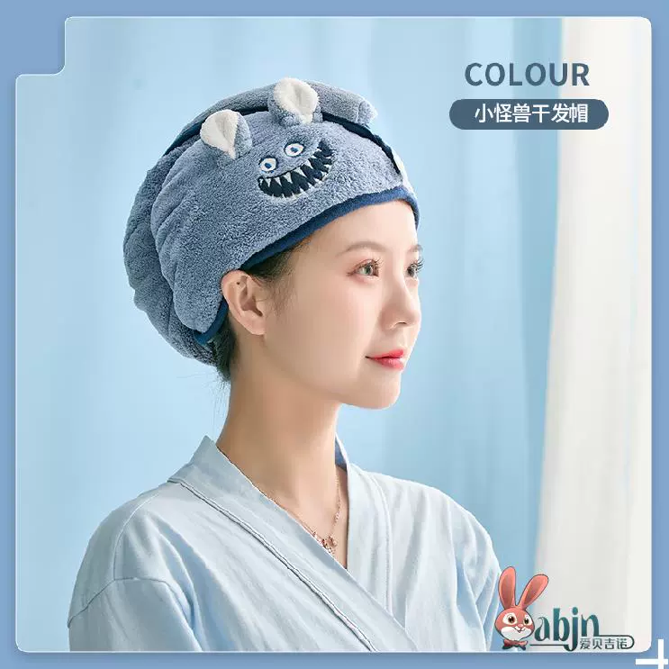 | nameOriginal | Quick-drying and absorbent dry hair cap for shampooing and wiping headscarf cute monster buttoned coral velvet thickened women's shower cap towel |