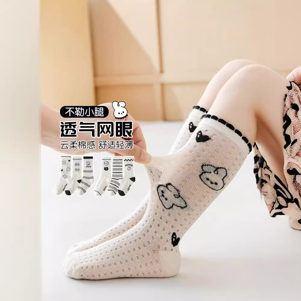 | nameOriginal | QW2023 children's socks summer new mesh boys and girls sports stockings cartoon bear thin student socks |