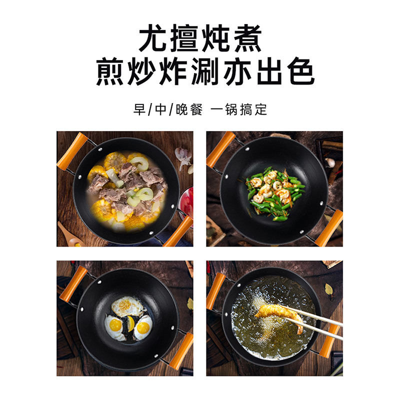 | nameOriginal | R9DC cast iron pot household stew pot double-ear old-fashioned iron pot deepening wok uncoated non-stick pot |