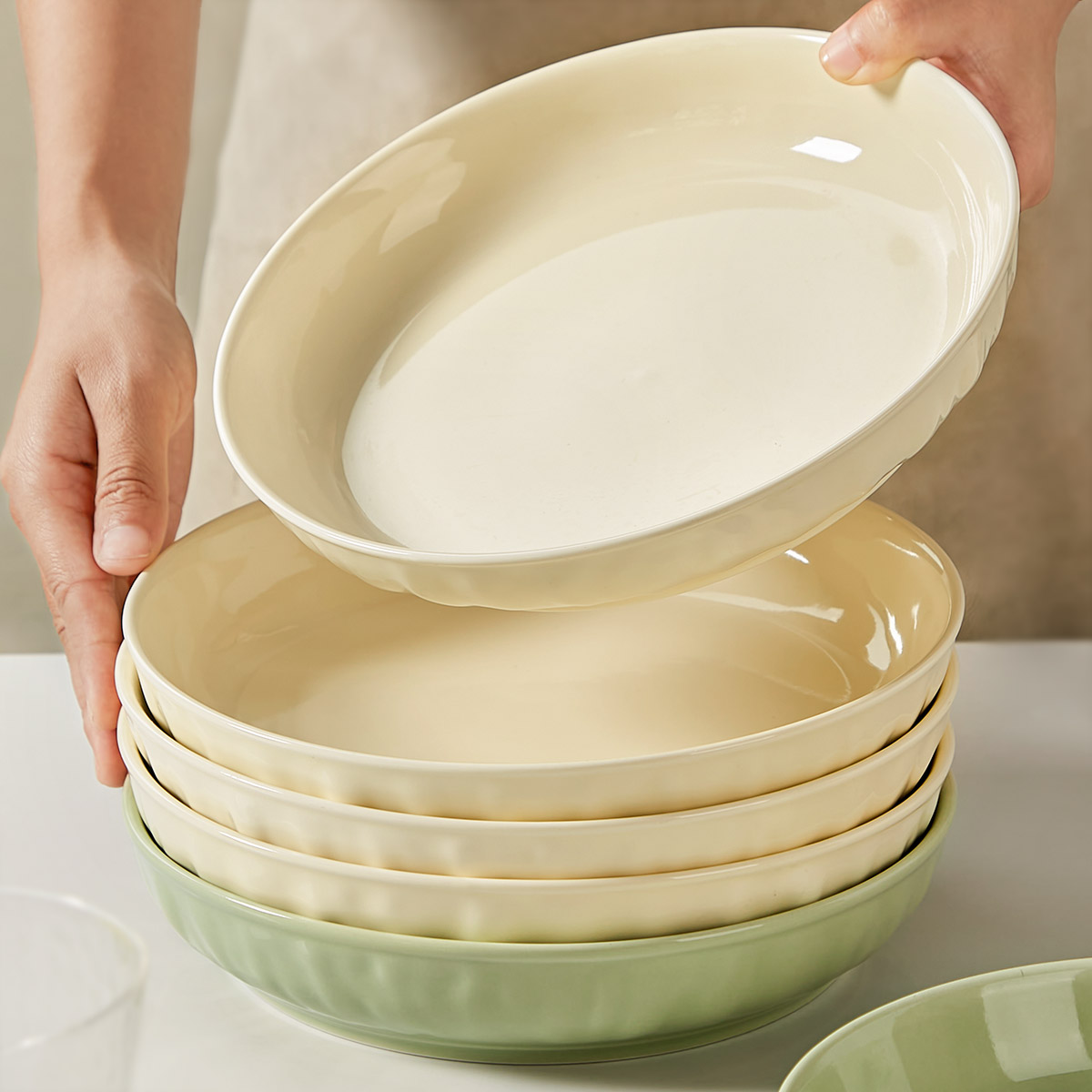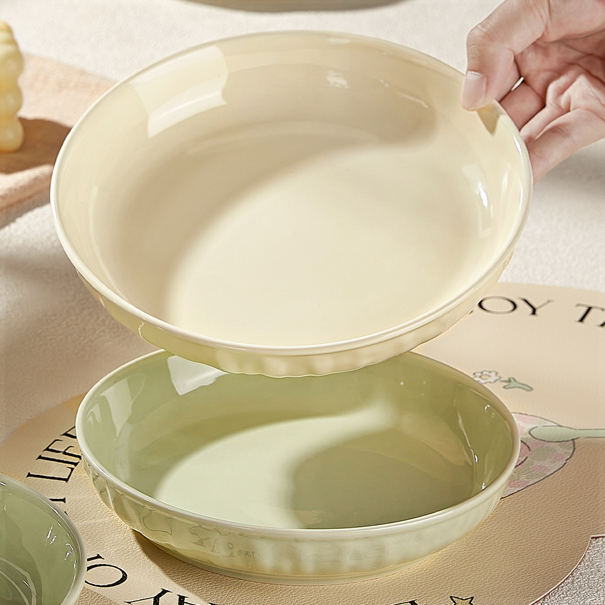 | nameOriginal | R9DC cream style ceramic plate dish household 7-inch dish plate deep dish dish tableware set |
