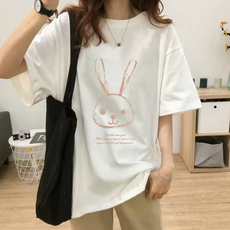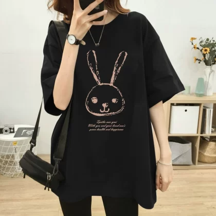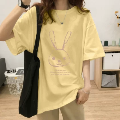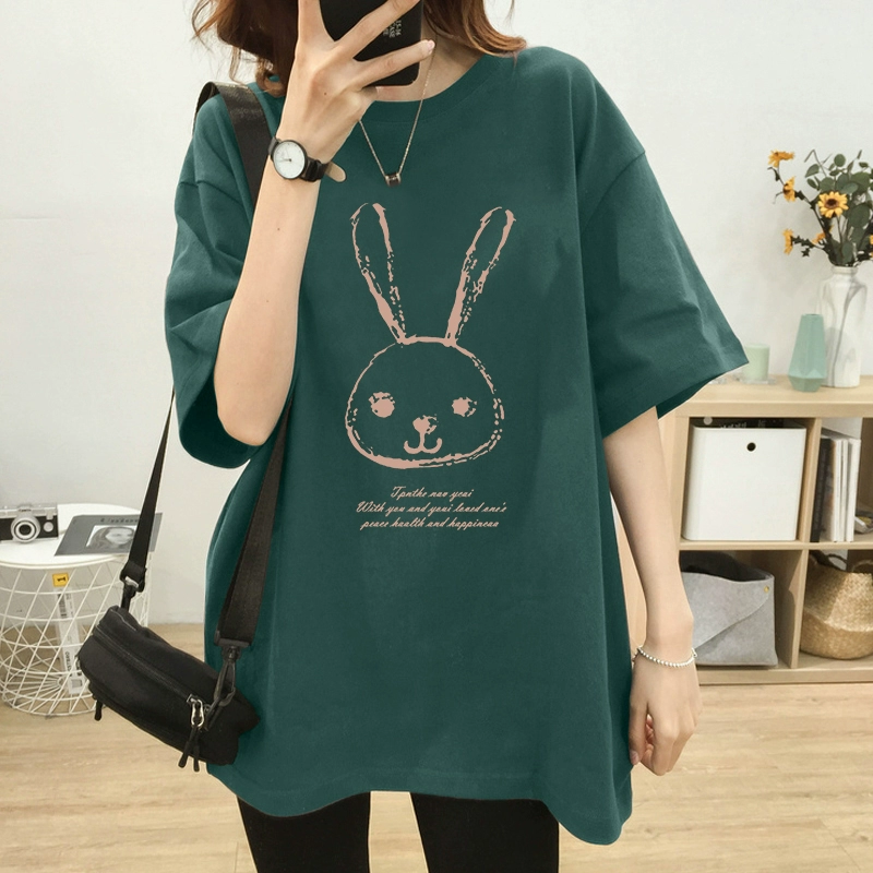 تي شيرت أرنب فضفاض باللون الأخضر الداكن وأكمام قصيرة رفيعة