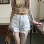 | nameOriginal | Raw edge ripped denim shorts with wide legs, fashionable perm |