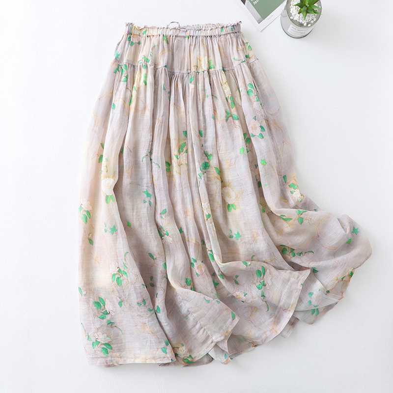 الحياة الحقيقية في المخزون الصيف الفني الحد من العمر مزاجه مطوي ألف خط تنورة فضفاضة كبيرة سوينغ أنيقة الأزهار تنورة للنساء