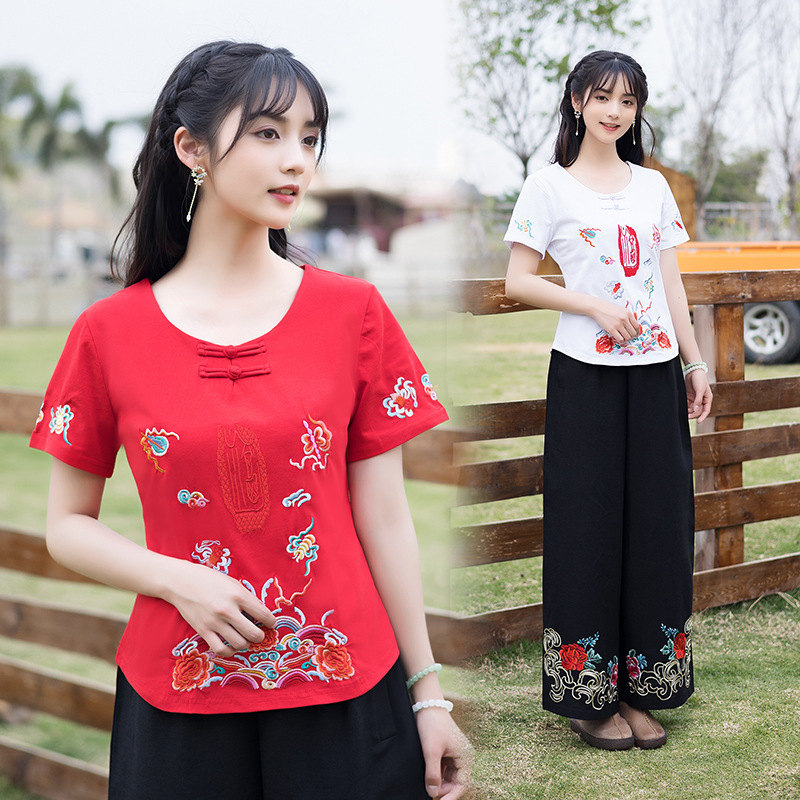 | nameOriginal | Real shot 2022 summer new slim ethnic embroidered T-shirt |