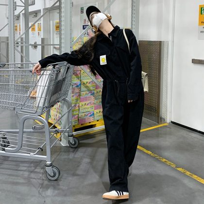nameOriginal | Real shot 2024 age-reducing black overalls short women's autumn Korean style high waist slimming casual pants suit |