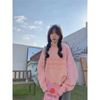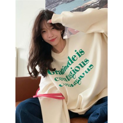 | nameOriginal | Real Shot 2024 Spring Korean-style Letter Pullover Sweat Women's Loose All-match Crewneck Top Outer 43594 |