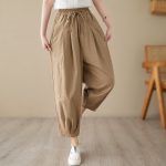 لقطة حقيقية 2024 صيف جديد فني فضفاض غير رسمي بسيط بلون تغطية اللحوم التخسيس توري السراويل للنساء