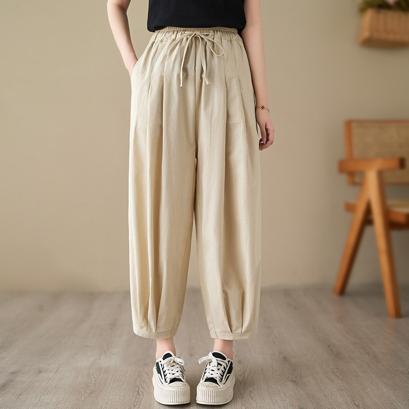Real Shot 2024 Summer New Artistic Loose Casual Simple Solid Color Meat Covering Slimming Torre Pants for Women