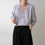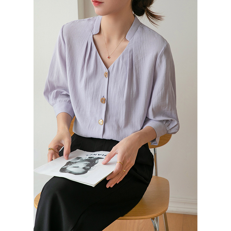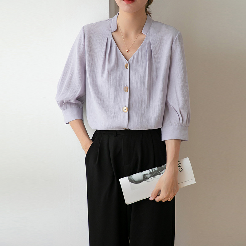 | nameOriginal | Real Shot 2024 Summer New French V-neck Loose Lazy Style Shirt Women's Spring and Summer Seven-point Sleeve Loose Top |