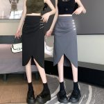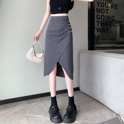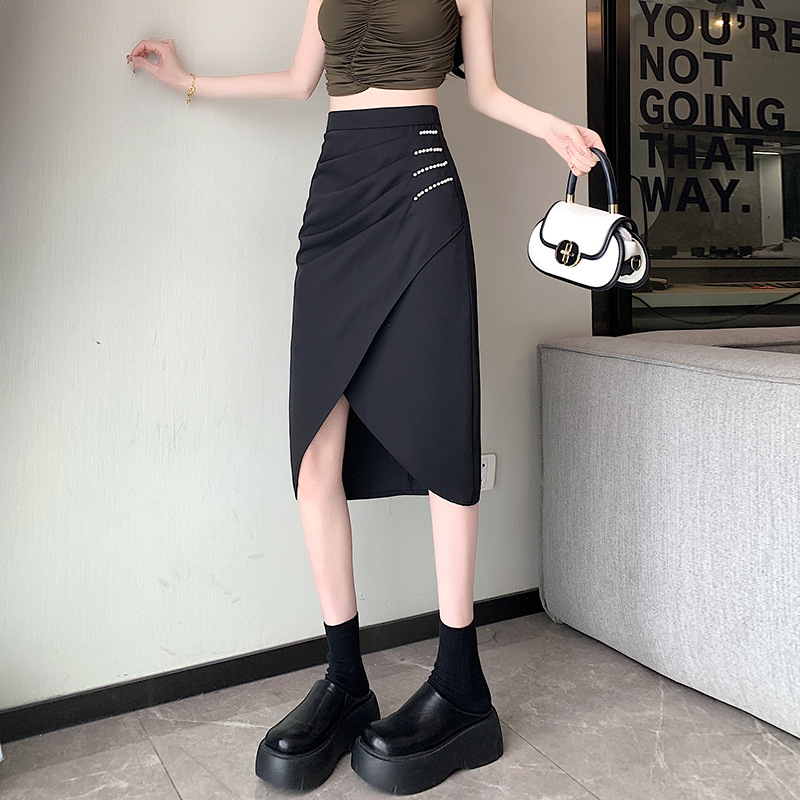 | nameOriginal | Real shot 2024 summer new suit skirt women's professional style irregular split pleated bag hip mid-length skirt |