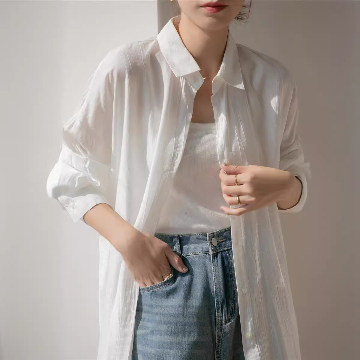 | nameOriginal | Real shot 2024 Summer niche design sun protection shirt Women's loose all-match long sleeve shirt thin solid color top |