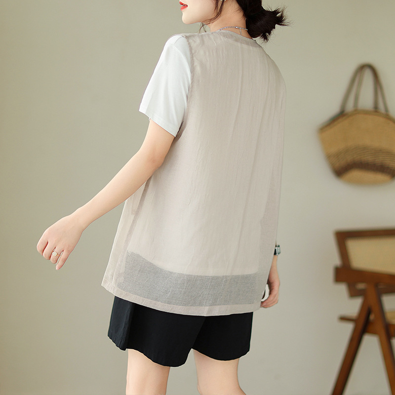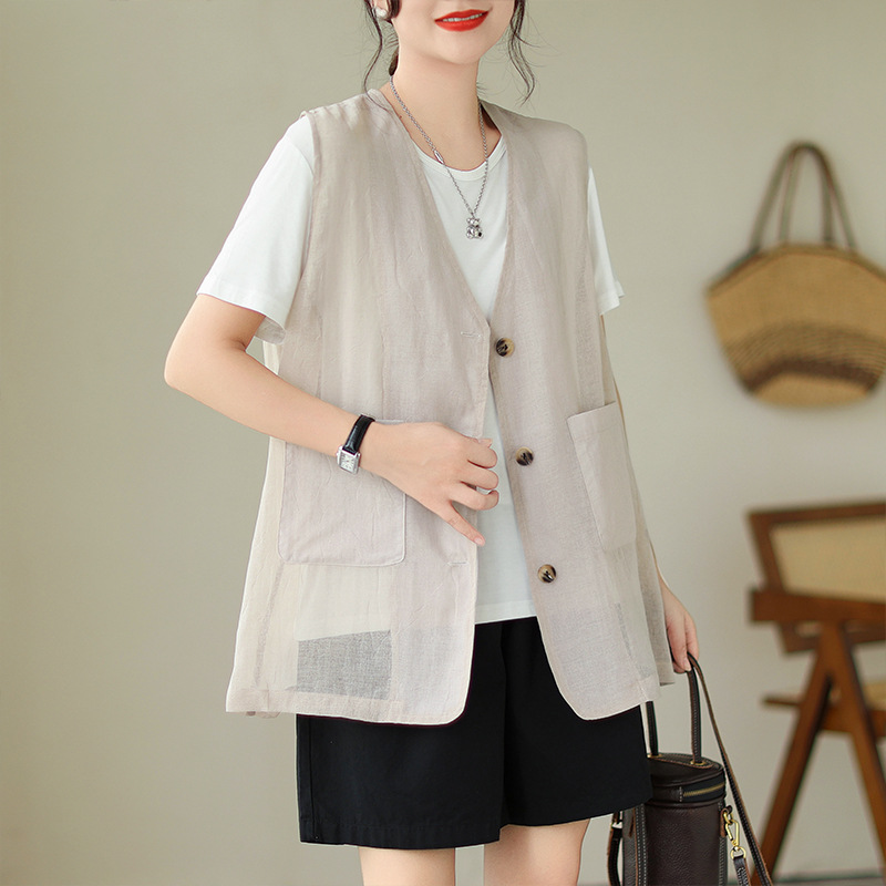 | nameOriginal | Real Shot 2024 Summer Thin New Vest Outer Wear Coat Large Size Women's Fashion Western Style Cotton and Linen Top Vest |