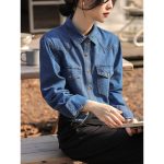 | nameOriginal | Real shot blue Denim shirt for women 2024 spring and autumn overlapping design sense small Zhongfu Gugang style loose long-sleeved top |