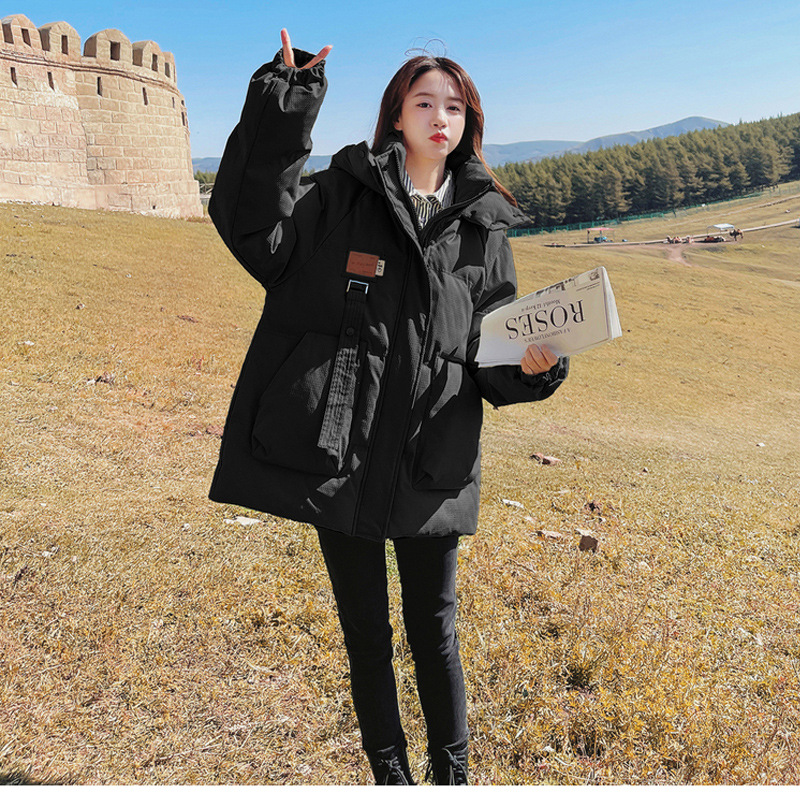 معطف نسائي مبطن بالقطن من Real shot معطف خبز قصير على الطراز الكوري مقاس صغير بالإضافة إلى مقاس هونج كونج جاكيت فضفاض للطالبات فتاة سمينة