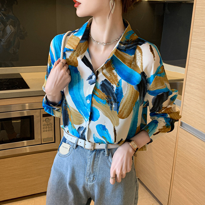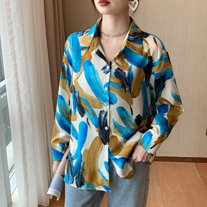 | nameOriginal | Real shot Hong Kong style retro chic tie-dyed printed long-sleeved shirt Women's Spring and Autumn Western style age-reducing versatile flower shirt |